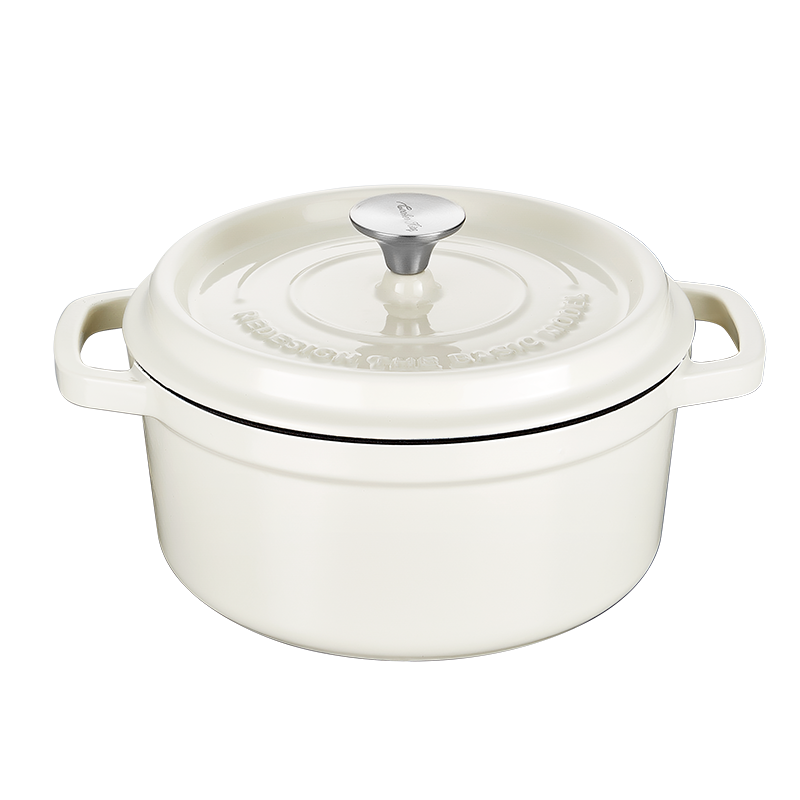 COOKER KING Chuanjia emaillierter Dutch Oven aus Gusseisen, robust, gleichmäßige Wärmeleitung, langanhaltende Wärme, Mandelweiß, 24 cm