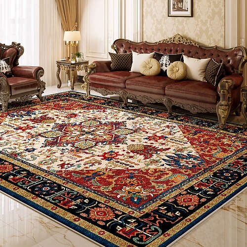 tappeto vintage in stile persiano, tappeto resistente all'acqua e alle macchie per soggiorno o camera da letto, grande tappetino a copertura totale, design retrò americano invecchiato