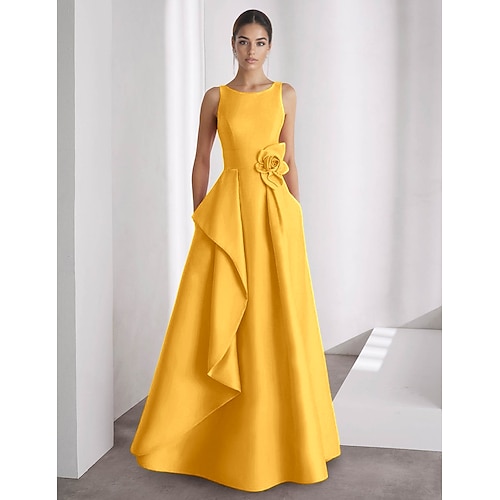 Abito da sera A-Line elegante abito formale da matrimonio lunghezza da terra senza maniche senza spalline satinato con arricciature
