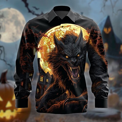 Camicia Uomo Costume Button Up Maniche Lunge Horror Festa Serata Abbigliamento Autunnale Invernale Primaverile Estate Collo Camicia Stampa 3D Nera