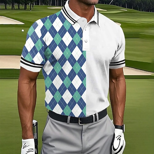 Per uomo Geometrico Polo Polo da Golf Manica Corta Magliette polo Bavero Casual Athleisure Stampa 3D Bottoni Estate Blu Verde