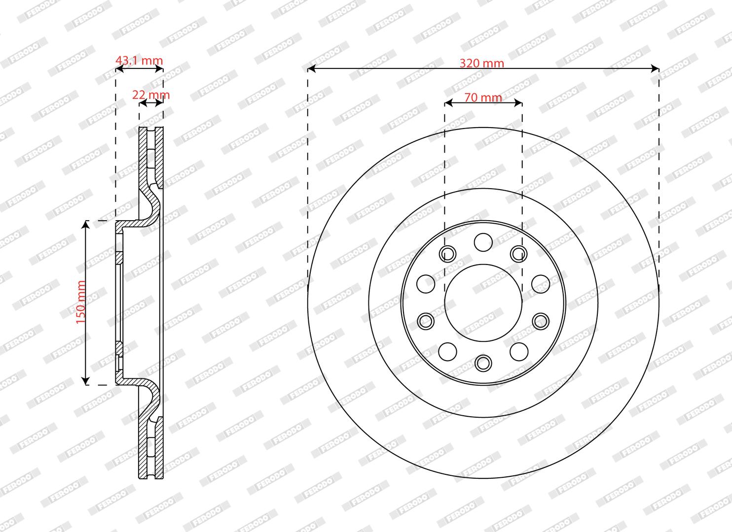 FERODO Bremsscheibe DDF3038C hinten rechts links belüftet 320mm für ALFA ROMEO 50546509 50532946 50571045