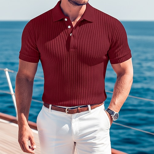 Per uomo Top a Maglia a Coste Testurizzato Casuale Lavoro Bavero Colletto Polo a Coste Manica Corta Essenziale Moderno Blocco di colori Bottoni Lavorato a maglia Primavera Estate Vestibilit