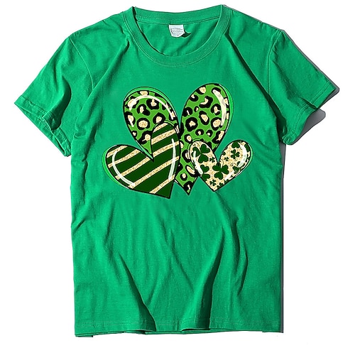 Giorno di San Patrizio Festa di San Patrizio Per donna Maglietta Cuore Foglia Leopardo Moda Manica Corta Girocollo Top Regolari Casuale Uscire Stampato Oro rosa Bianco Rosa Verde militare Verde Estate