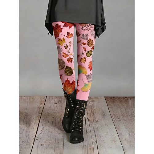 Per donna Leggings Leggings comodi Vacanza Casual Lunghezza intera Vita Alta Foglia Stampa Comodità Confortevole Alta elasticità Casuale Quotidiano Vacanza Nero Rosa Verde Beige Primavera Autunno