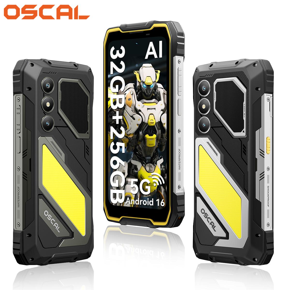 OSCAL PILOT 5 Wytrzymały Mobilny 5G Android 16 15000mAh 8GB RAM 256GB ROM Smartfon żółty