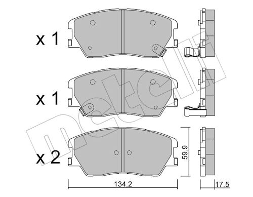 METELLI Bremsbelagsatz, Scheibenbremse 22-1305-0 vorne rechts links für KIA 58101-K0A10 58101-J2A10