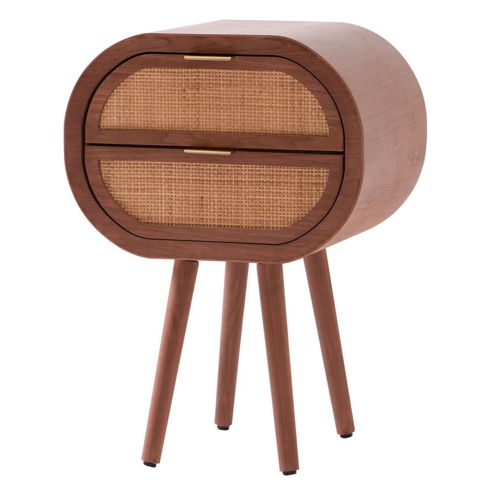 Miliboo Table de chevet en bois manguier massif et cannage rotin avec rangements 2 tiroirs ACANGE