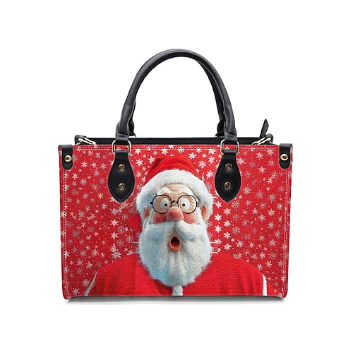 borsa tote natalizia da donna - in similpelle, design con Babbo Natale e pupazzo di neve, borsa regalo per le feste da donna, borsa per le feste di Natale, perfetta per feste e gite invernali