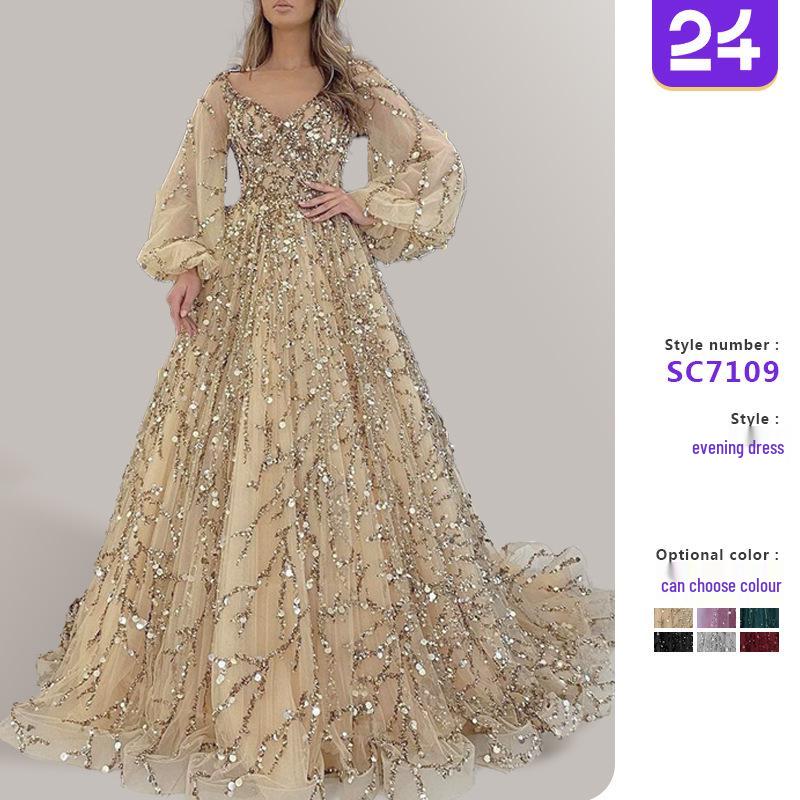 2025 Robe de Soirée Luxueuse Dorée Perlée SC7109 cm rose