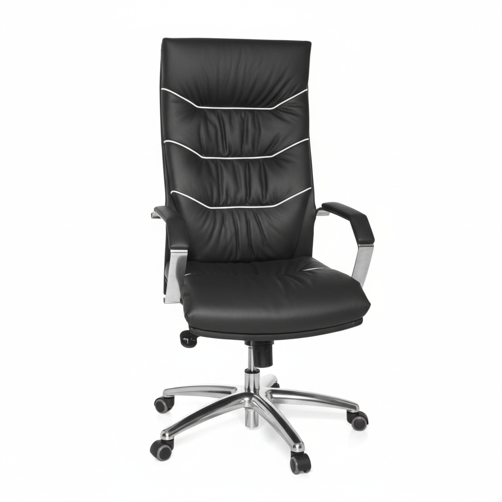 `Xxl` Chefsessel Kanzas: Echtleder, Soft-Air Formpolster, verchromte Armlehnen, Aluminium-Fußkreuz, 5-Punkt Mechanik. 60x55x126 cm | Kadima Design
