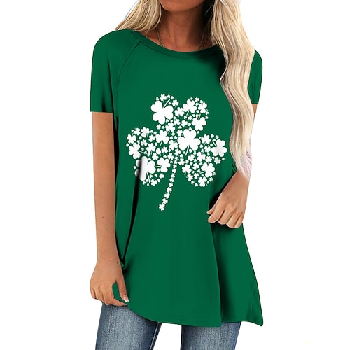Giorno di San Patrizio Festa di San Patrizio Per donna Maglietta Foglia Giorno di San Patrizio Tunica Manica Corta Girocollo Top lunghi Ferie Weekend Stampato Verde primavera Bianco Verde chiaro