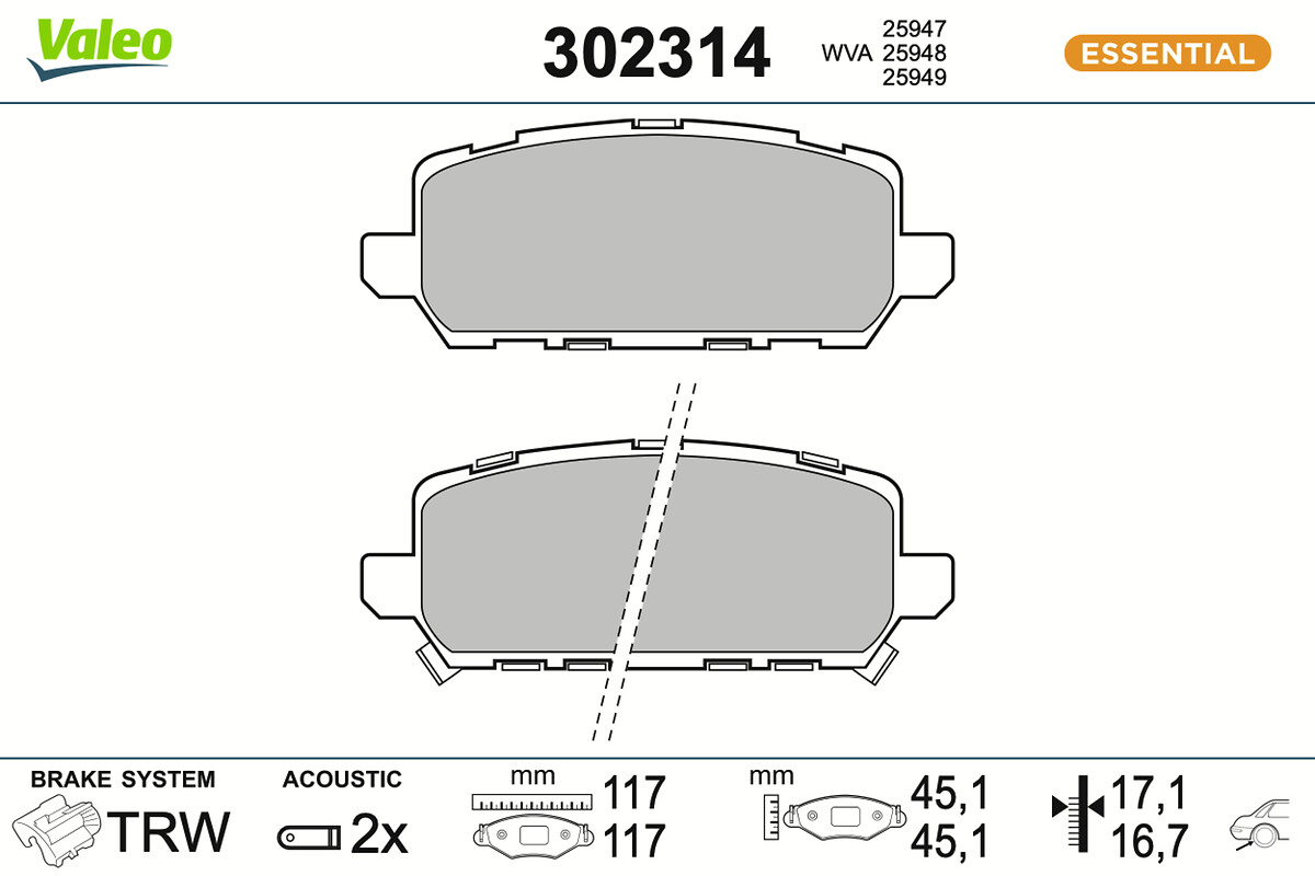 VALEO Bremsbelagsatz, Scheibenbremse FIRST 302314 hinten rechts links für HONDA (GAC) (DONGFENG) 4302231AG00 43022-T8M-G01 43022T8MG00