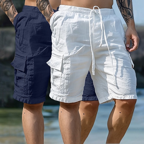 Per uomo Shorts Shorts di Lino Shorts da Spiaggia Pantaloncini di seersucker Pantaloncini strutturati Coulisse Elastico in vita Semplice Comodità Traspirante Sopra il ginocchio Quotidiano All'aperto