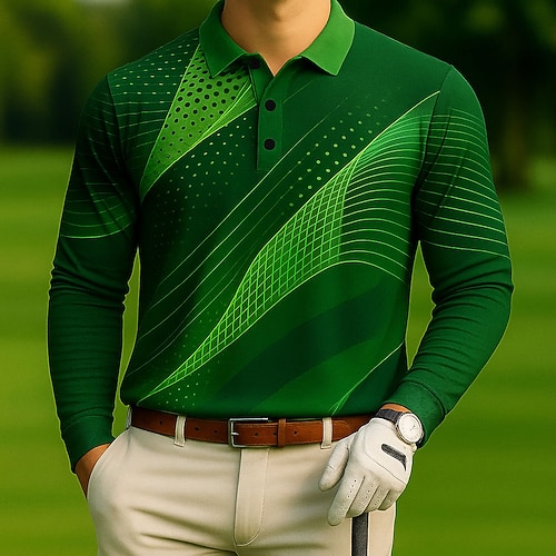 Per uomo Lettera Polo Manica Lunga Magliette polo Camicie con Colletto Abbigliamento Sportivo Casual All'aperto Scuola Athleisure Stampa 3D Primavera Autunno Inverno Verde
