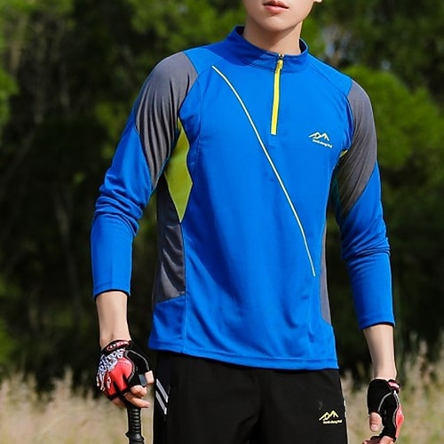 Per uomo maglietta T-shirt da escursione Manica lunga Chiusura lampo quarto Maglietta Maglietta con muscoli Maglietta elasticizzata per bodybuilding Esterno Asciugatura rapida Allenarsi Morbido