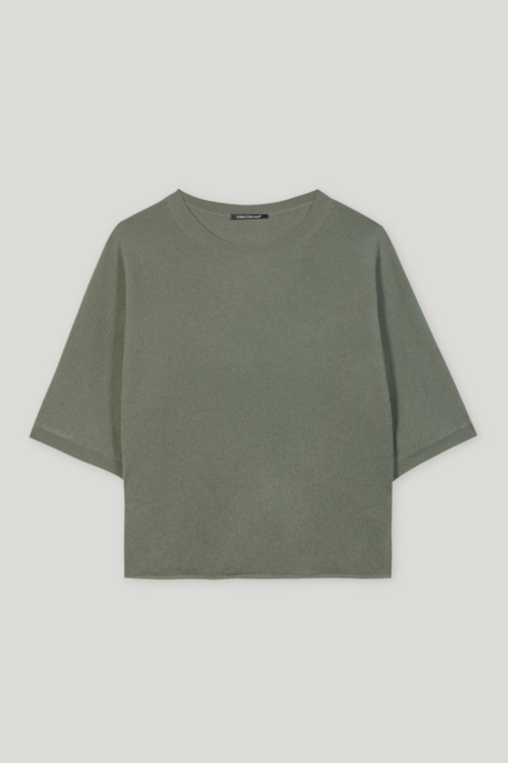 Kurzarmpullover VIVANCE, Damen, Gr. 44/46, beige, Strick, Obermaterial: 70% Baumwolle, 30% Polyester, unifarben, modisch, figurbetont hüftlang, V-Ausschnitt, Kurzarm, Pullover, mit modischer Wellenkante, T-Shirt mit V-Ausschnitt, Baumwoll-Mix