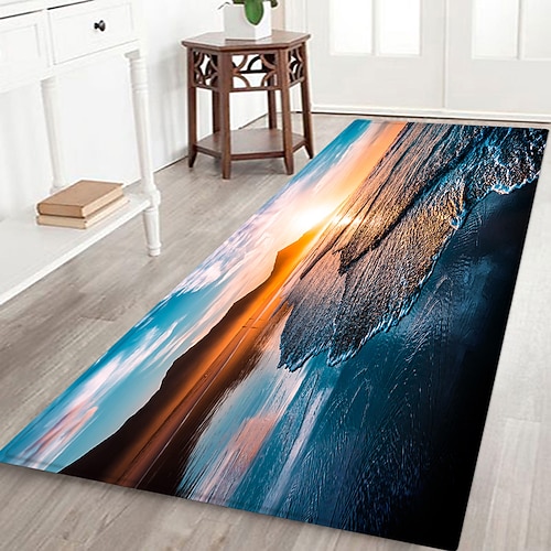 tappeto da corridoio con motivo a vista mare e spiaggia, tessuto di flanella stampato, decorazione per la casa, tappetino antipolvere per ingresso, morbido e assorbente, cuscino per il bagno