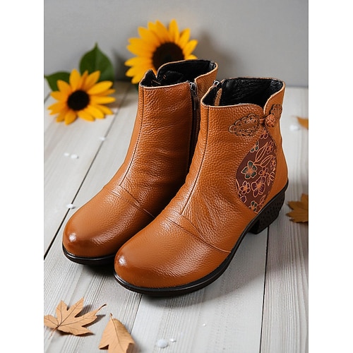 stivaletti da donna in crosta di pelle con cerniera laterale – comodi tacchi bassi, stile casual retrò, perfetti per l'uso quotidiano, il lavoro, le passeggiate e gli outfit autunnali/invernali