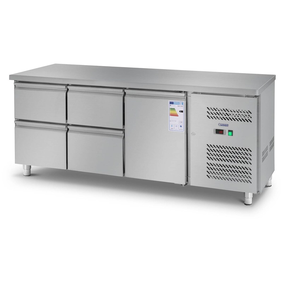 Royal Catering Kühltisch - 403 L - 1 Fach- 4 Schubladen - 179,5 x 71 cm - Klasse B - Edelstahl -