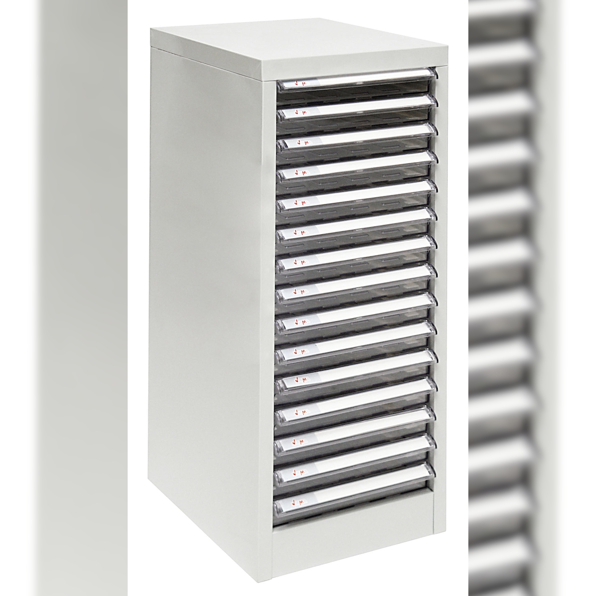 PROREGAL Schubladencontainer Kobra mit 15 Schubladen | HxBxT 74x28x34cm | Lichtgrau