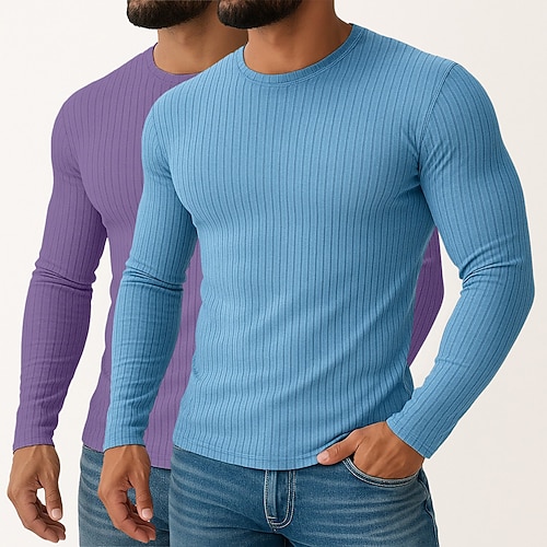 Per uomo Maglietta Canotta Muscolare Maglietta a Maglia a Coste Camicia a Maniche Lunghe Manica Lunga Girocollo Primavera Autunno Tutte le stagioni Tinta unica Semplice Testurizzato Moda Designer