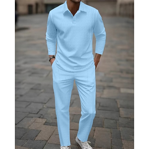 Per uomo Completi T-shirt Completi camicia e pantaloni Outfit 2 pezzi Manica Lunga Bavero Primavera Autunno Semplice Moda Casual Jacquard 2 Pezzi Vacanza Abbigliamento quotidiano Uscire Nero Bianco