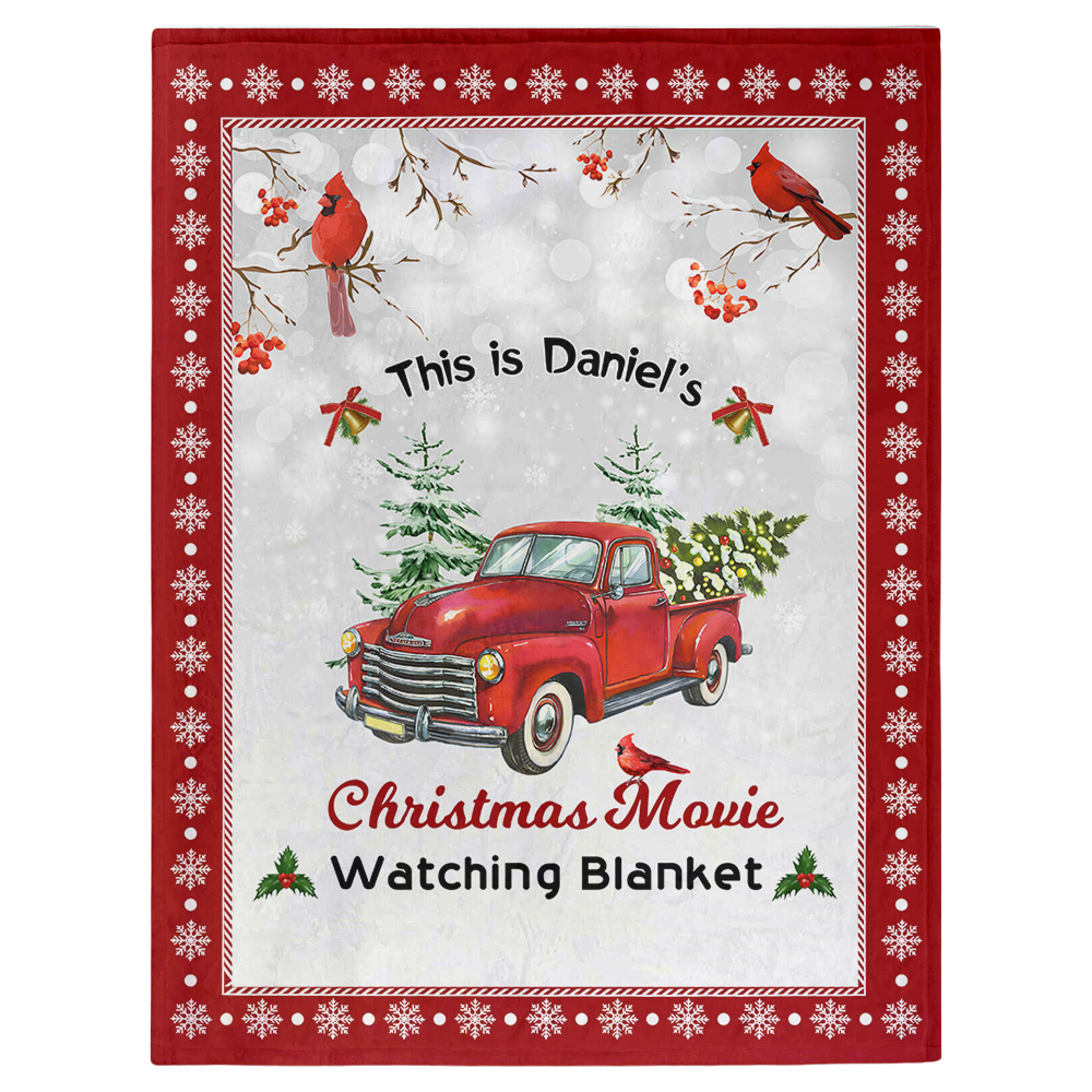 Couverture Personnalisée avec Nom pour Regarder un Film de Noël Image Camion Rouge Cadeau Noël pour Membre de la Famille ou Ami