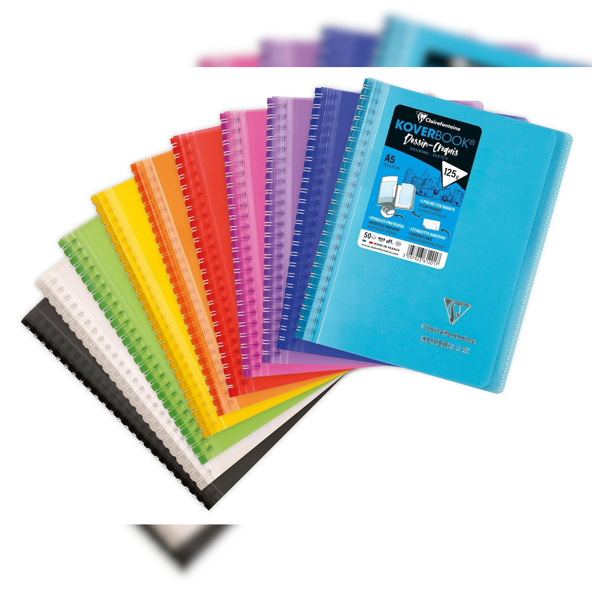 Clairefontaine 10x Koverbook, Zeichenblock/Skizzenblock mit Doppelspiralbindung, A5, 50 Bl blanko weiß 125g, Einband aus PP - Sortiert 361201C