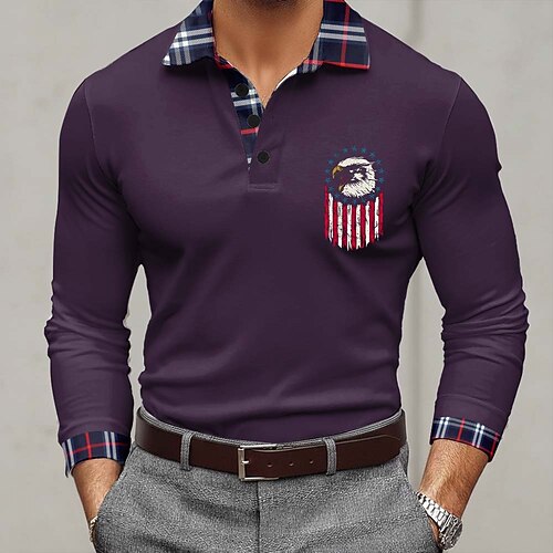 Giorno dell'Indipendenza Americana Per uomo Bandiera Americana Polo Manica Lunga Magliette polo Bavero Casual All'aperto Athleisure Abito da festa Stampa 3D Bottoni Primavera Autunno Blu Nero Rosso