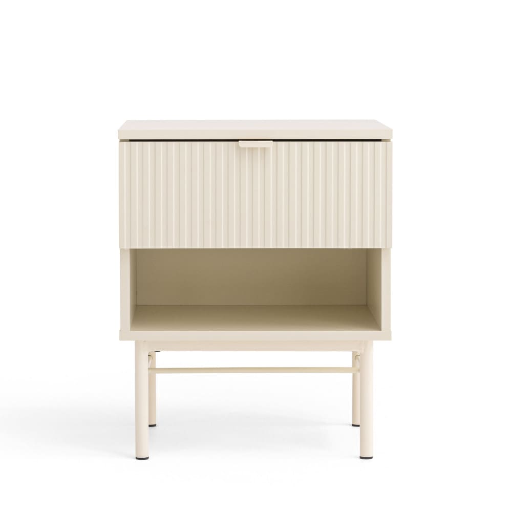 Table de chevet 1 tiroir, 1 niche en bois et métal - Crème