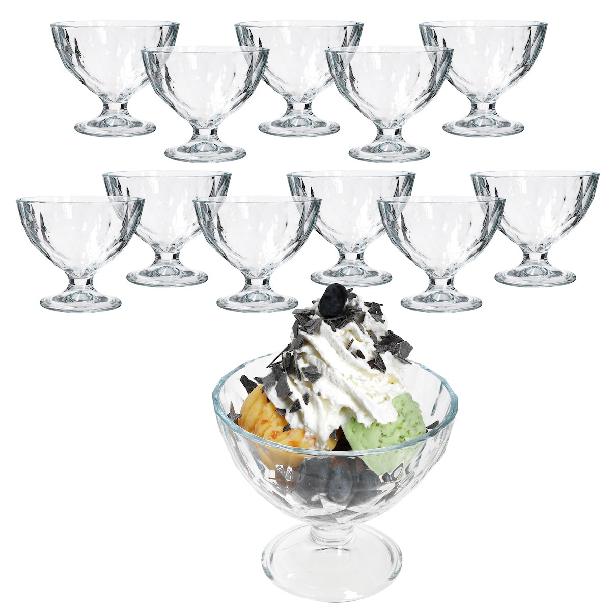 12x DIAMOND Eisbecher mit Fuß 220ml klar bauchige Früchtebecher Dessert-Gläser