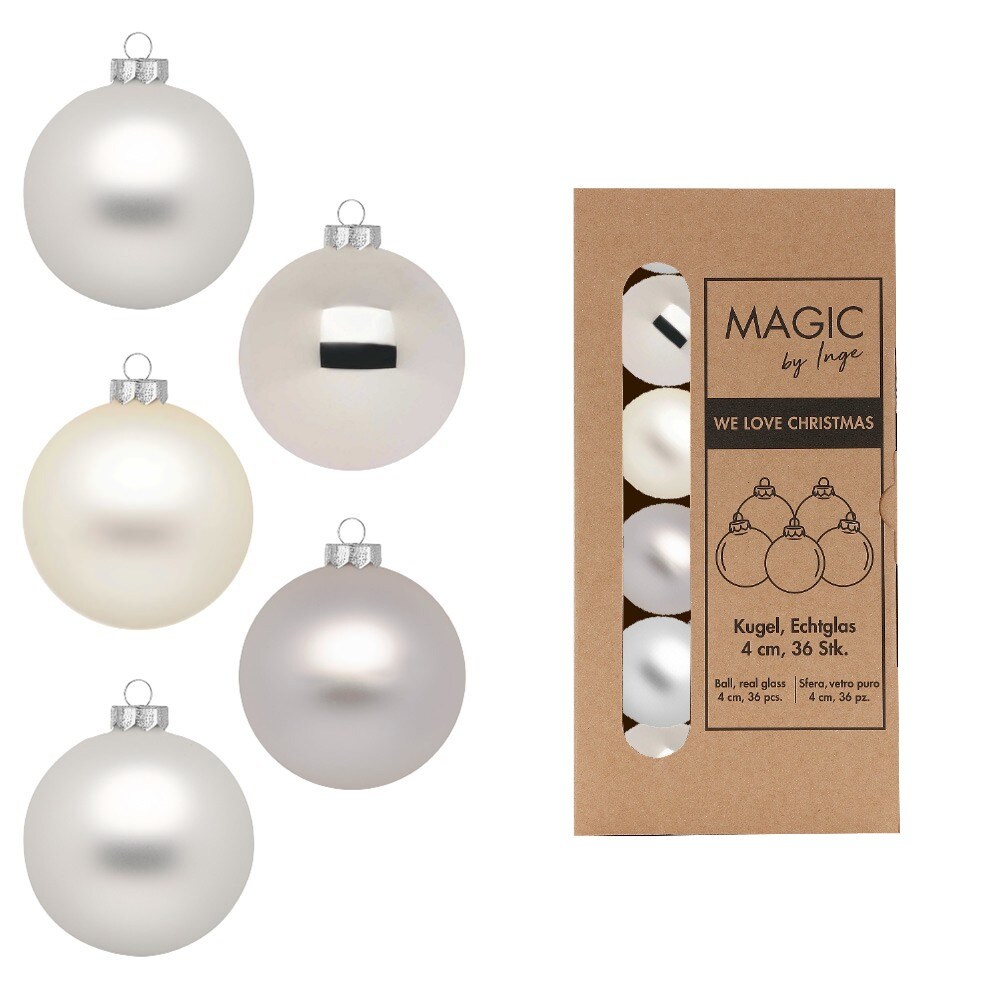 Inges Magic & Goodz 36 Weihnachtskugeln 4cm Glas Christbaumkugeln Weihnachtsbaumkugeln klein silber