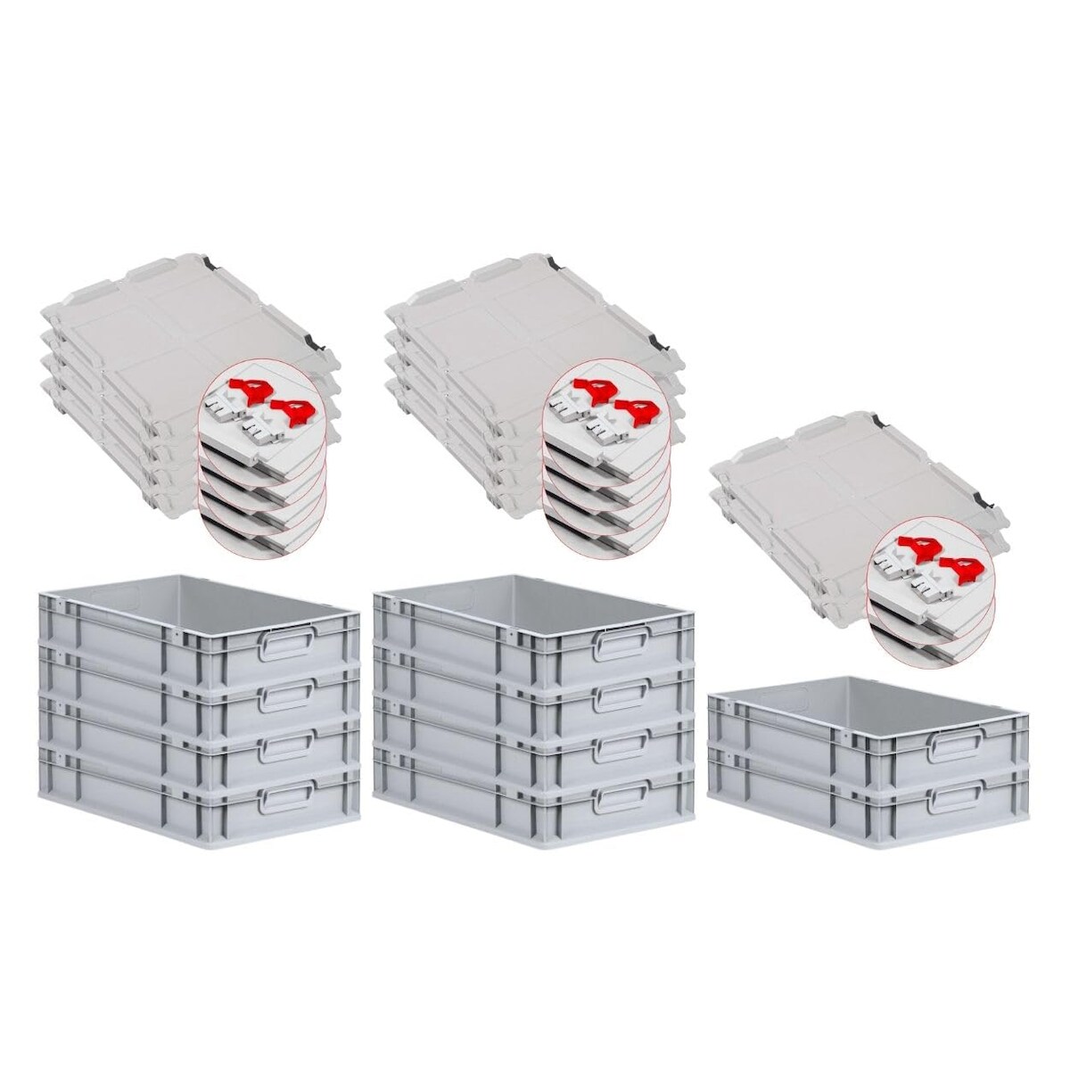 PROREGAL SuperSparSet 10x Eurobox NextGen Economy mit Scharnierdeckel & roten Verschlüssen, Griffe zu, HxBxT 12x40x60cm, 23L, Eurobehälter, Box