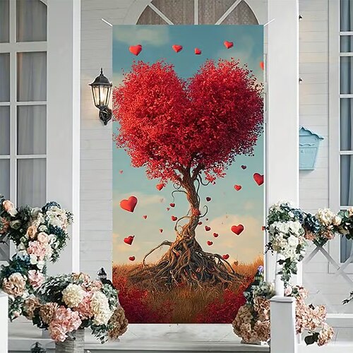 San Valentino Poster Copertura della porta Banner per esterni Amore Cuori Carino Romantico Moderno Da serata Dormitorio Sfondi di ripresa Porta d'ingresso Decorazione per proposta di matrimonio