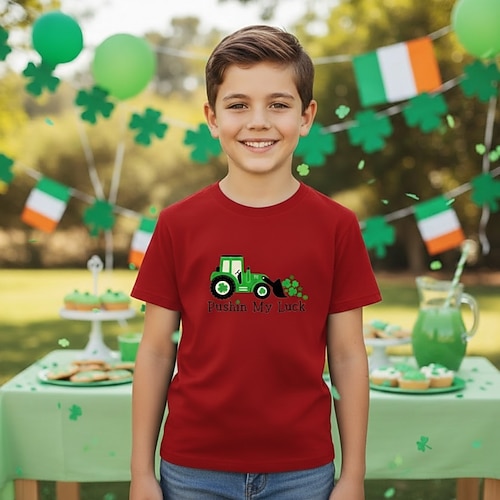 100% cotone, maglietta per bambini e ragazzi, blu, nero e bianco, con grafica, trifoglio, festa di San Patrizio, camicetta, girocollo, manica corta, per attività all'aperto, abbigliamento quotidiano,