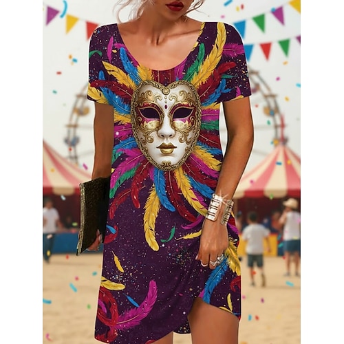 Per donna Mini Abito Vestito Casual Vestito T-Shirt Moda Moderno Quotidiano All'aperto Vacanza Vestibilità regolare Grafico Manica Corta Girocollo Nero Viola chiaro Viola Viola scuro Estate Primavera