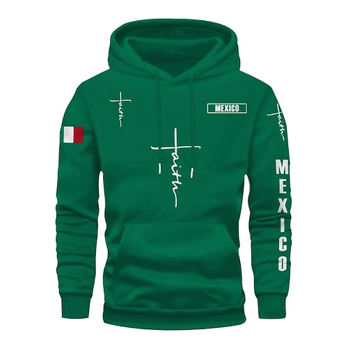 Per uomo Felpa con cappuccio Nero Rosa Rosso Blu Verde Con Cappuccio Bandiera Croce Tasca Coulisse Tasca Frontale Sport Outdoor Quotidiano Ferie Poliestere Streetwear Grafica Casual Autunno Inverno