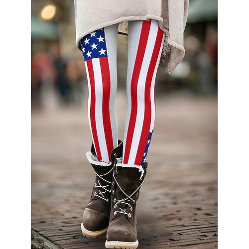 Per donna Leggings Leggings comodi Vacanza Casual Lunghezza intera Vita AltaPantsGiorno dell'indipendenza americana Bandiera Americana Stampa Comodità Confortevole Elasticizzato Casuale Quotidiano