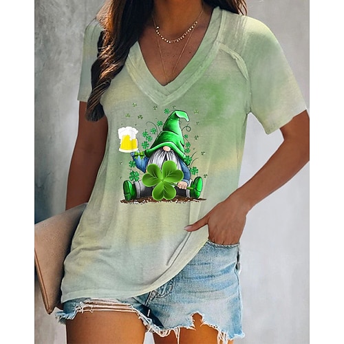 Giorno di San Patrizio Festa di San Patrizio Per donna Maglietta Foglia Giorno di San Patrizio Manica Corta Scollo a V Top Regolari Quotidiano Weekend Stampato Bianco Verde Grigio