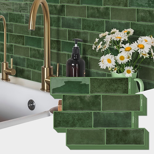 Paraschizzi autoadesivi da 10 fogli più spessi per piastrelle della metropolitana, paraschizzi autoadesivi verdi da 12x12 per cucina e bagno