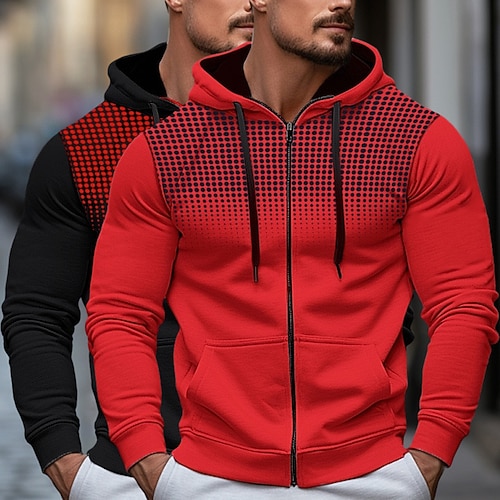 Per uomo Felpa con cappuccio Felpa con cappuccio a zip intera Felpa con cappuccio in pile Bianco rosso Rosso grigio Bianco nero Gray bianco NeroGrigio Con Cappuccio A Pois Semplice Cerniera