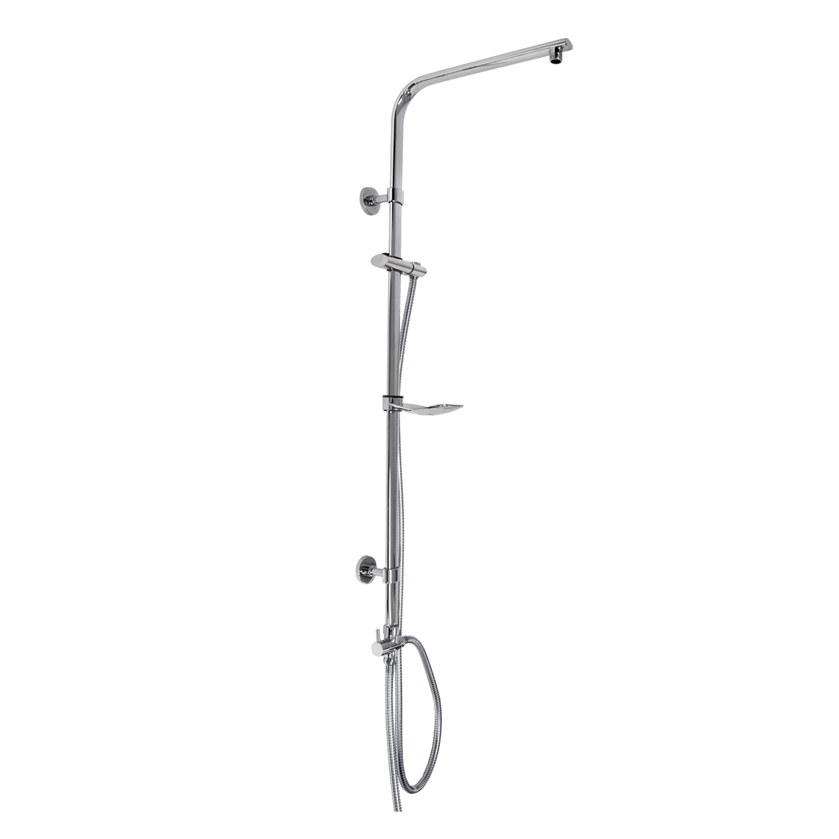 ECD Germany Duschsystem Edelstahl V2A Chrom – Duschsäule zur Wandmontage, höhenverstellbar mit 2 Brauseschläuchen & Seifenablage, ohne Duschkopf