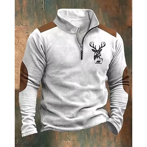 Per uomo Maglia Felpa con cappuccio Maglione Felpa con zip corta Felpa da caccia Bianco Blu Marrone Cachi Caffè Colletto Mao Animale Semplice Patchwork Sport Outdoor Casuale Quotidiano Streetwear