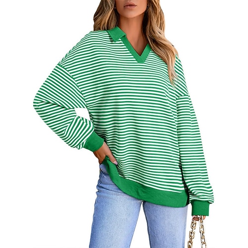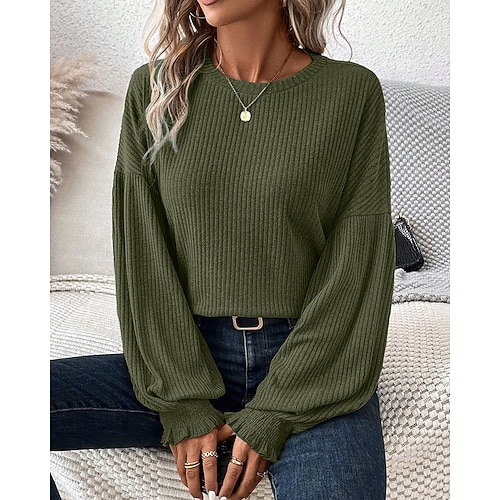 Per donna Blusa Semplice Moda Casual Manica Lunga Girocollo Top Regolari Quotidiano Uscire Weekend Patchwork Verde militare Marrone chiaro Verde Bianco sporco Autunno