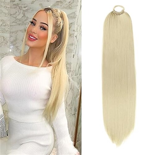 Extension per capelli a coda di cavallo da donna, lunga coda di cavallo intrecciata con elastico, extension sintetica liscia a coda di cavallo intrecciata da 22 pollici (riflessi biondo dorato)