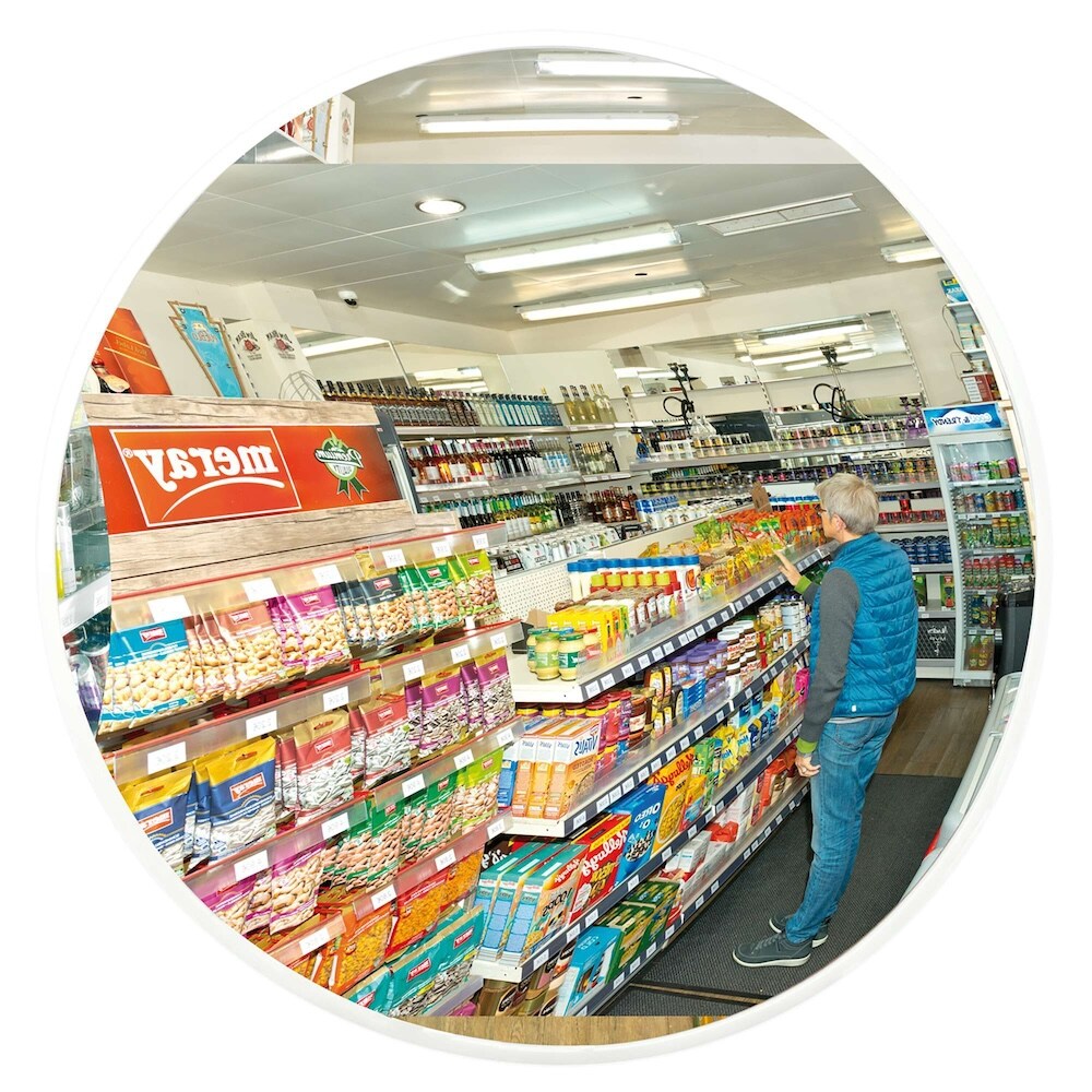 PROREGAL Beobachtungsspiegel ECO aus Acrylglas mit weißer Halterung zur Wandmontage | Spiegel-Ø 50cm | Beobachtungsabstand 5m