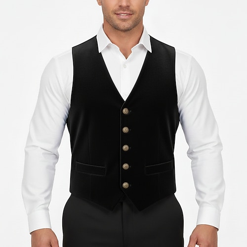 Gilet casual da uomo con revers a V, nero bordeaux, formale, tinta unita, vestibilità su misura
