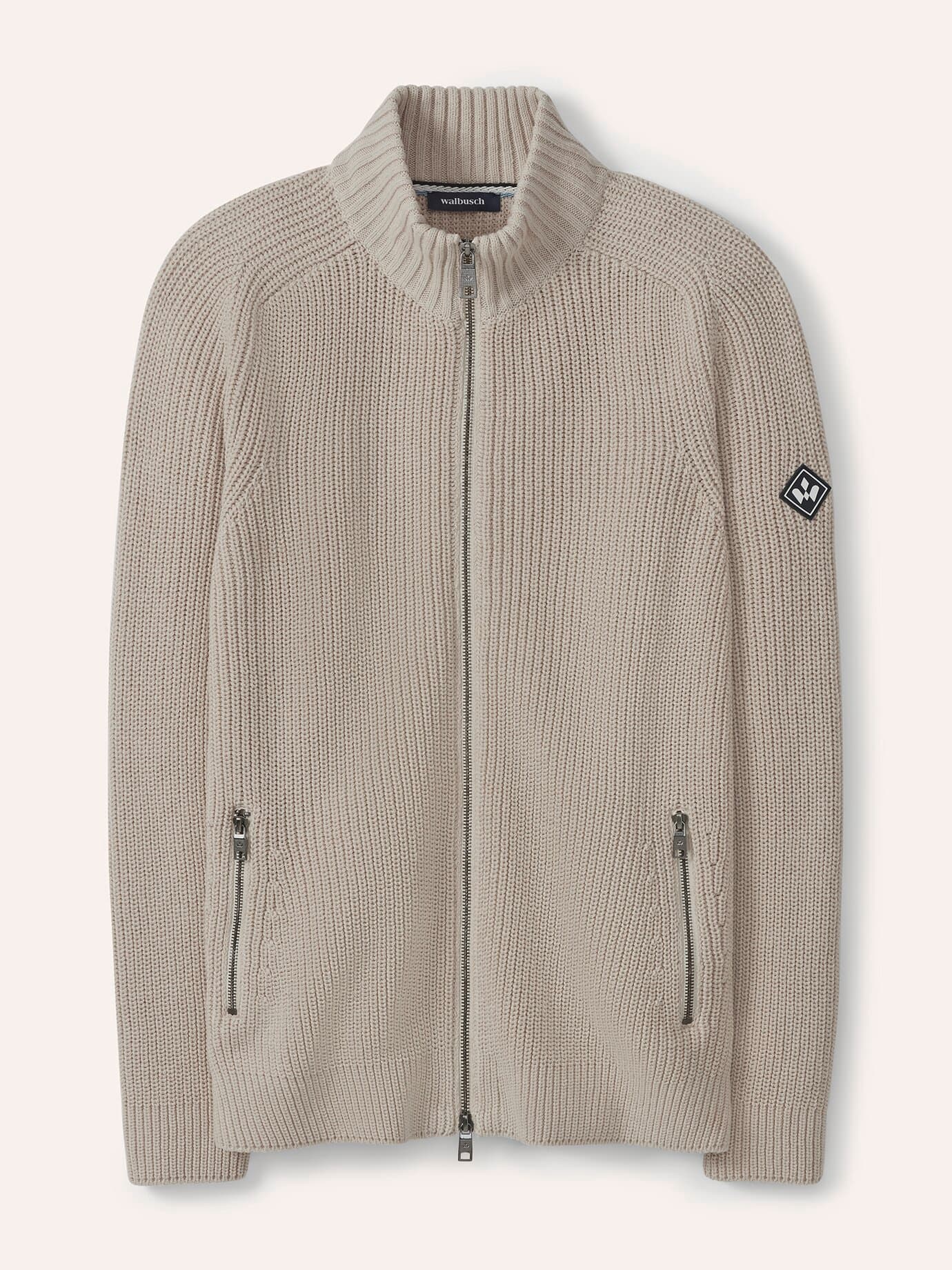 Walbusch Herren Zip-Jacke Patenstrrick Beige