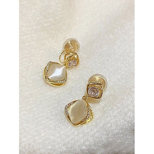 eleganti orecchini pendenti placcati in oro da donna con occhio di gatto e zircone, disponibili in stile a perno forato e a clip per matrimoni, feste e occasioni formali